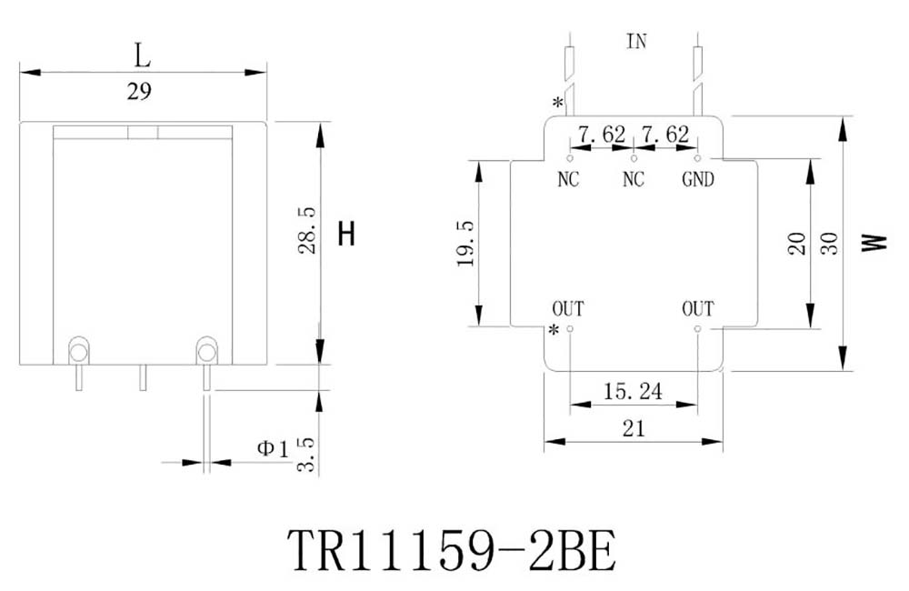 实物图 型 号 额定输入Uin 额定输出Uout 精度等级 空载功耗(VA) 工频耐压(V) 外形尺寸(mm)