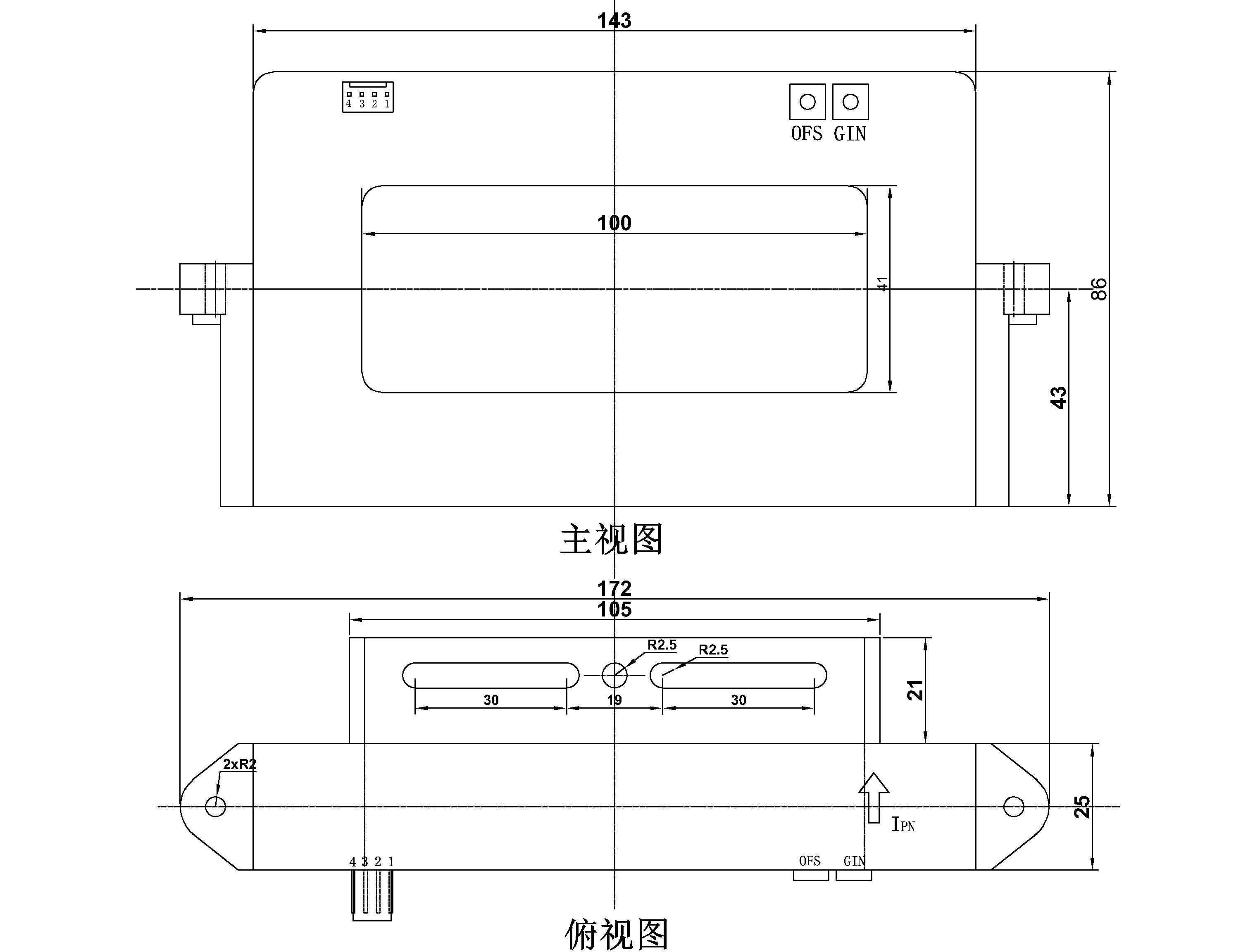 该传感器采用直测式霍尔检测原理工作。原边电流产生的磁通量聚集在磁电路中,并由霍尔器件检测出霍尔电压信号,经过放大器放大,该电压信号精准的反应原边电流。